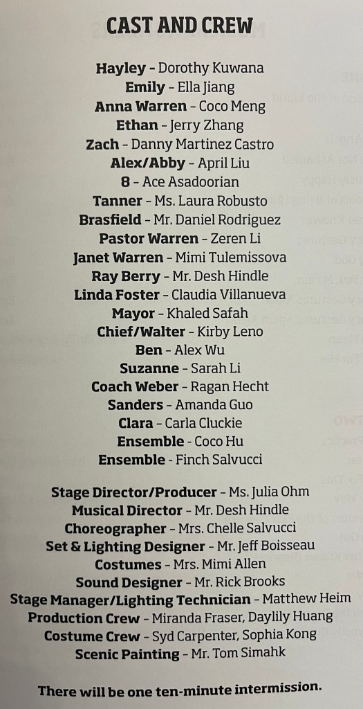 Julia Angeles, Ocean Aquino, Olivia Bingham, Jude Burk, Sophia Cherwinski, V Desautels, Helena Farah, Ana Farah, Rhea Flores. Mackenzie Harr. Hannah Lancaster, Amanda Lancaster, Jacob Lancaster, Chloe Lanteign-Marrow. Elise Lanteign-Marrow. Izzy Masquelier. Jay McKinnon. Mallory McVey. Finch Milsten. Rion Nogel. Joel Perez, Marliene Perez, Charley Pero, Hadley Qualls, Amber Shellenberger, Kellan Smith, Ryan Snider, Manny Tellado, Daphne Willis, Nala Yates